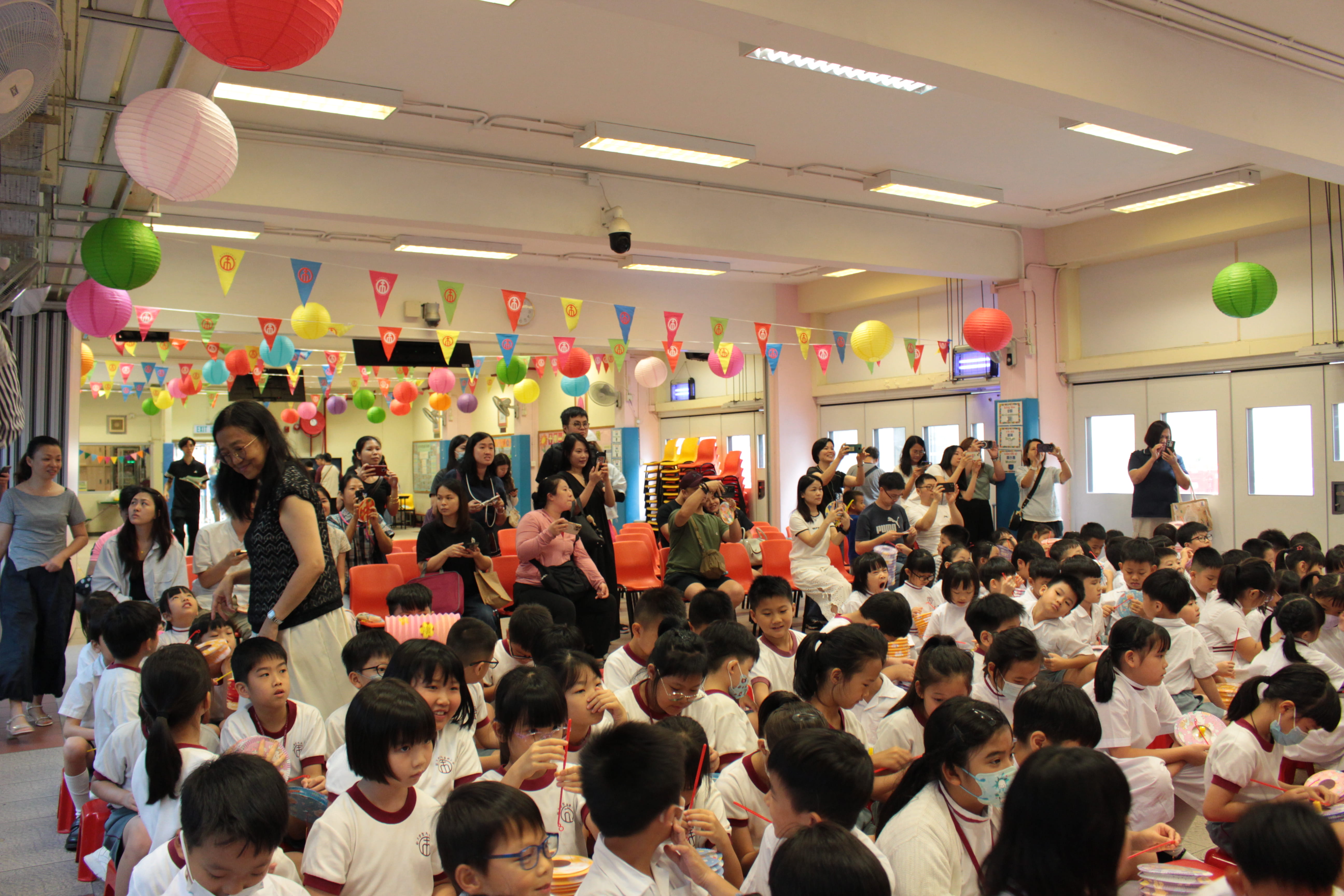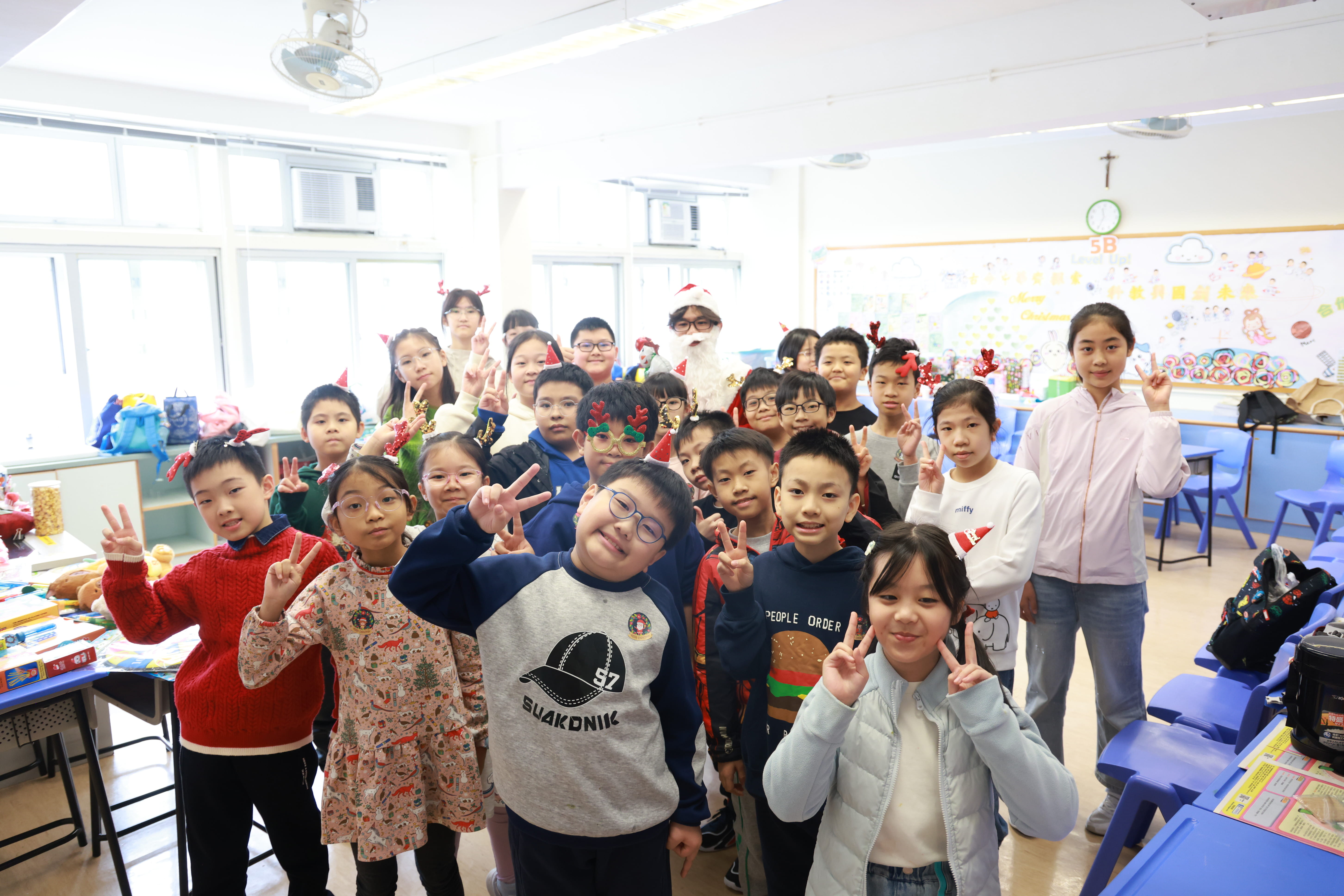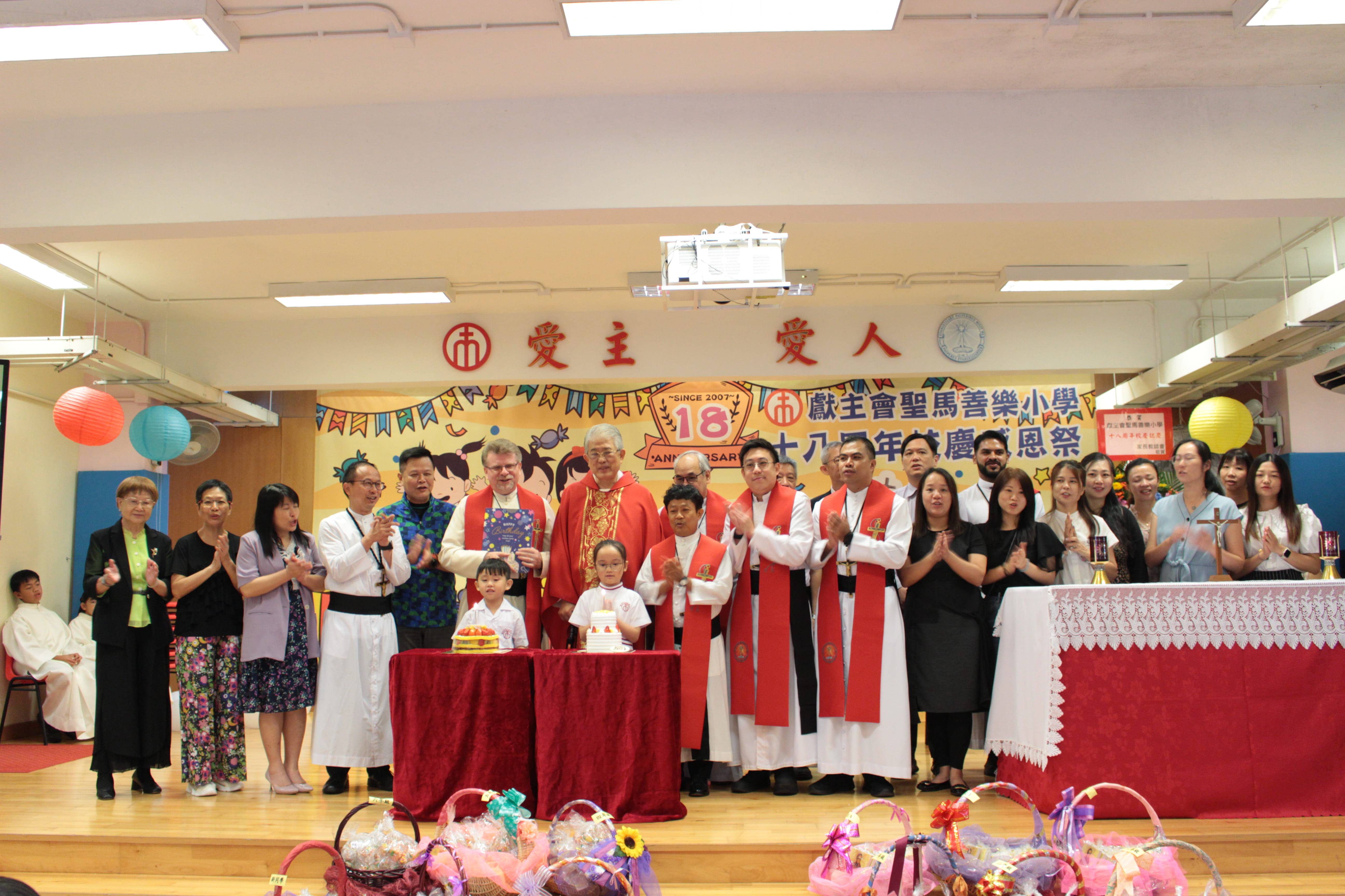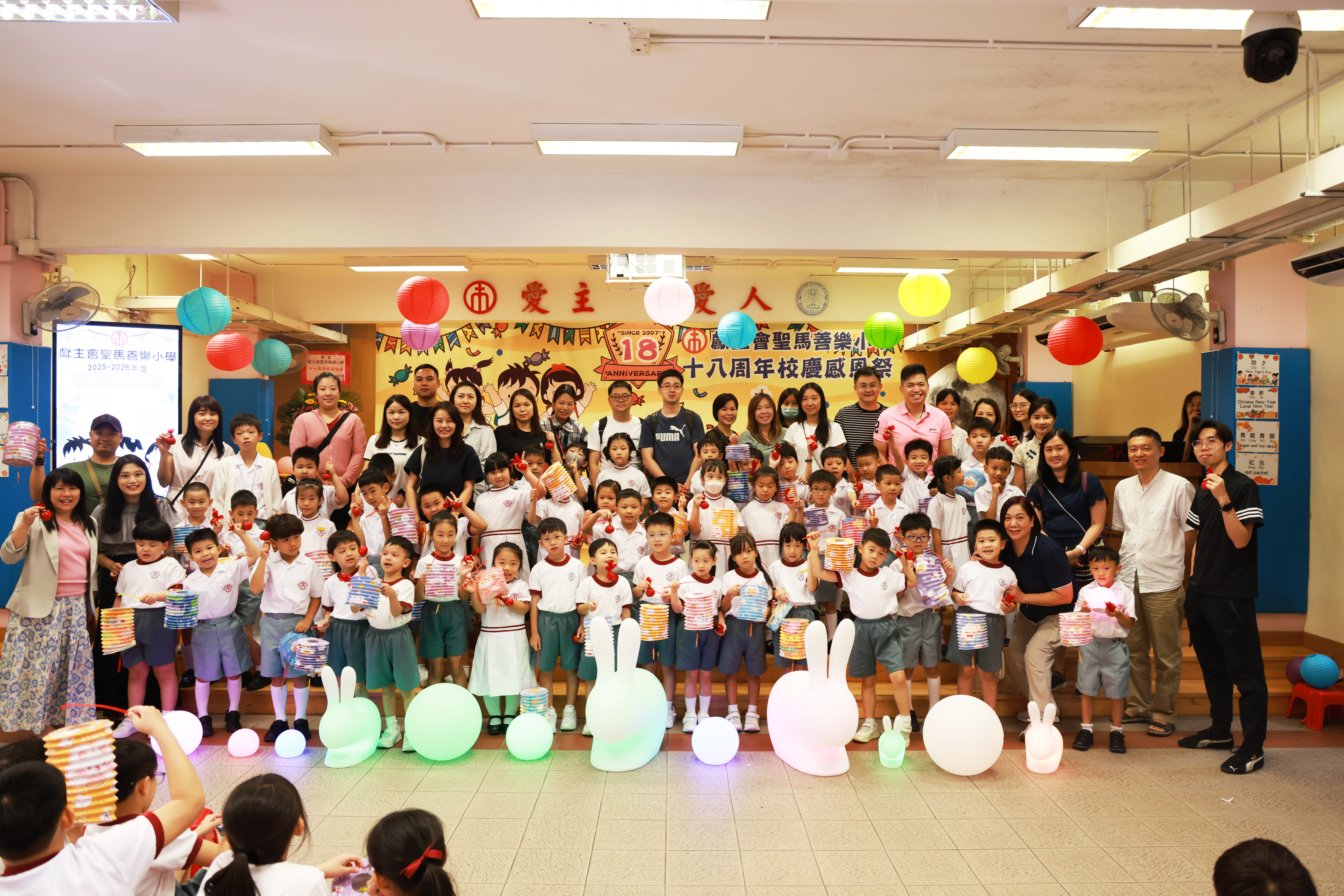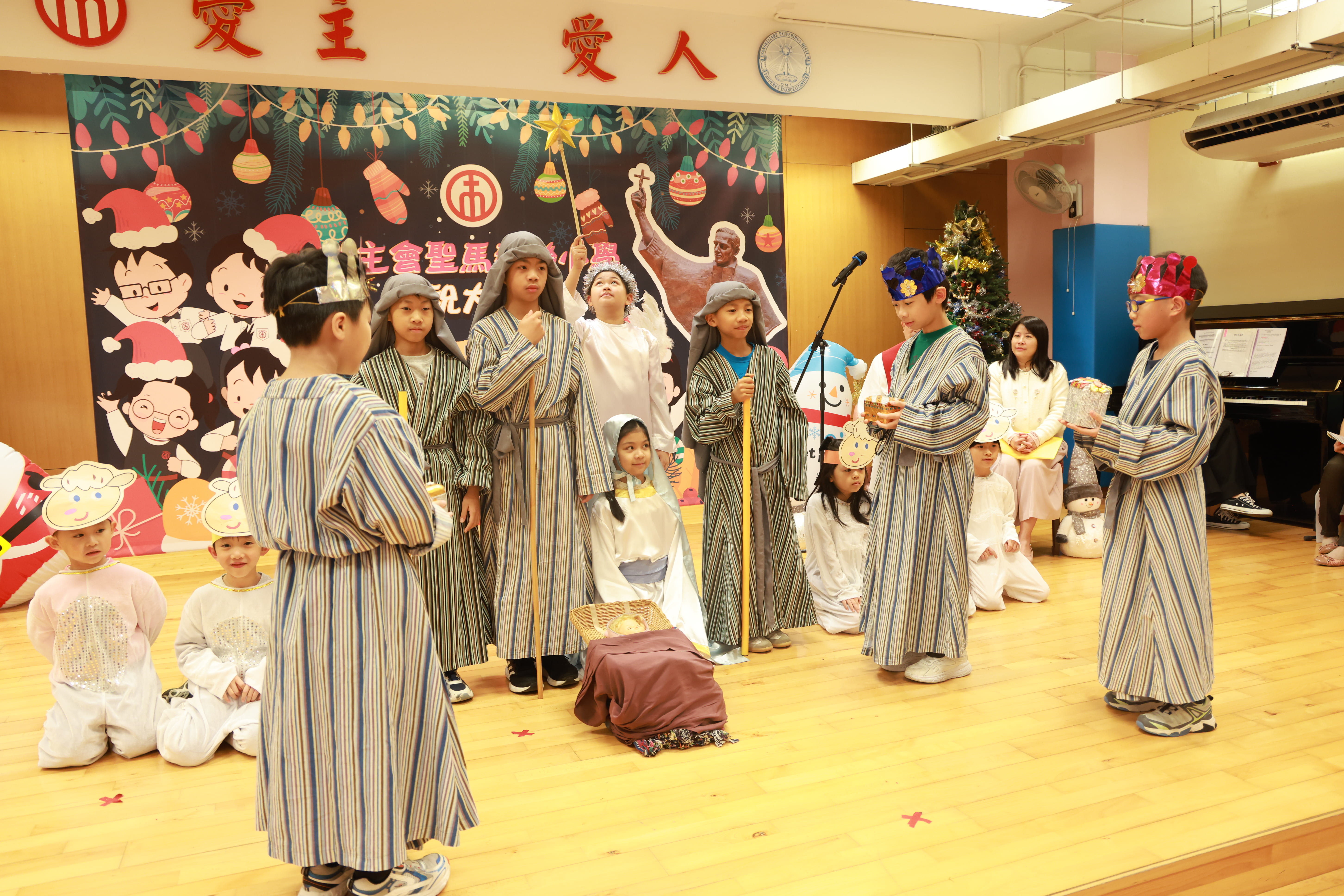全圖寓意歡欣雀躍的小朋友在獻主會聖馬善樂小學內,