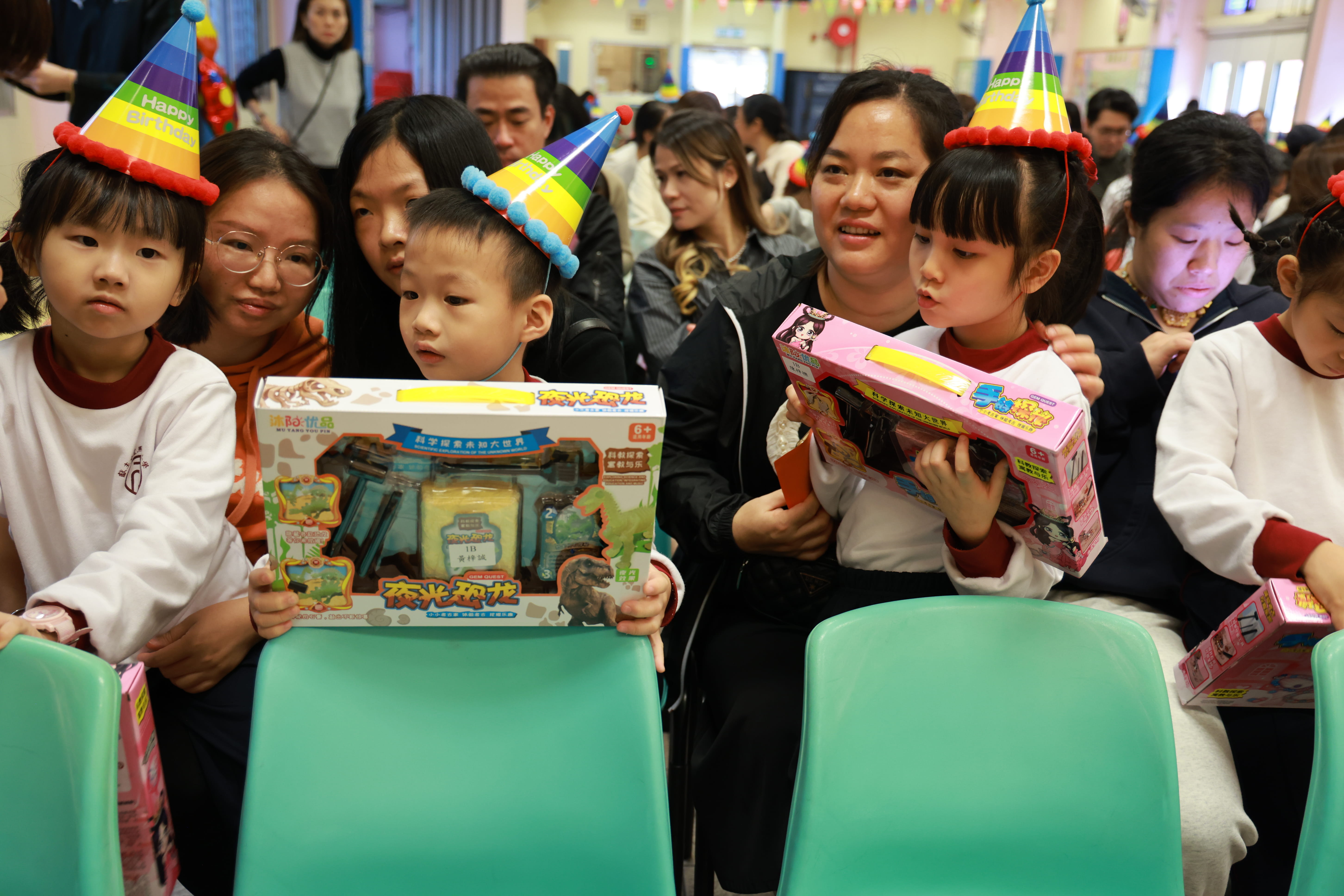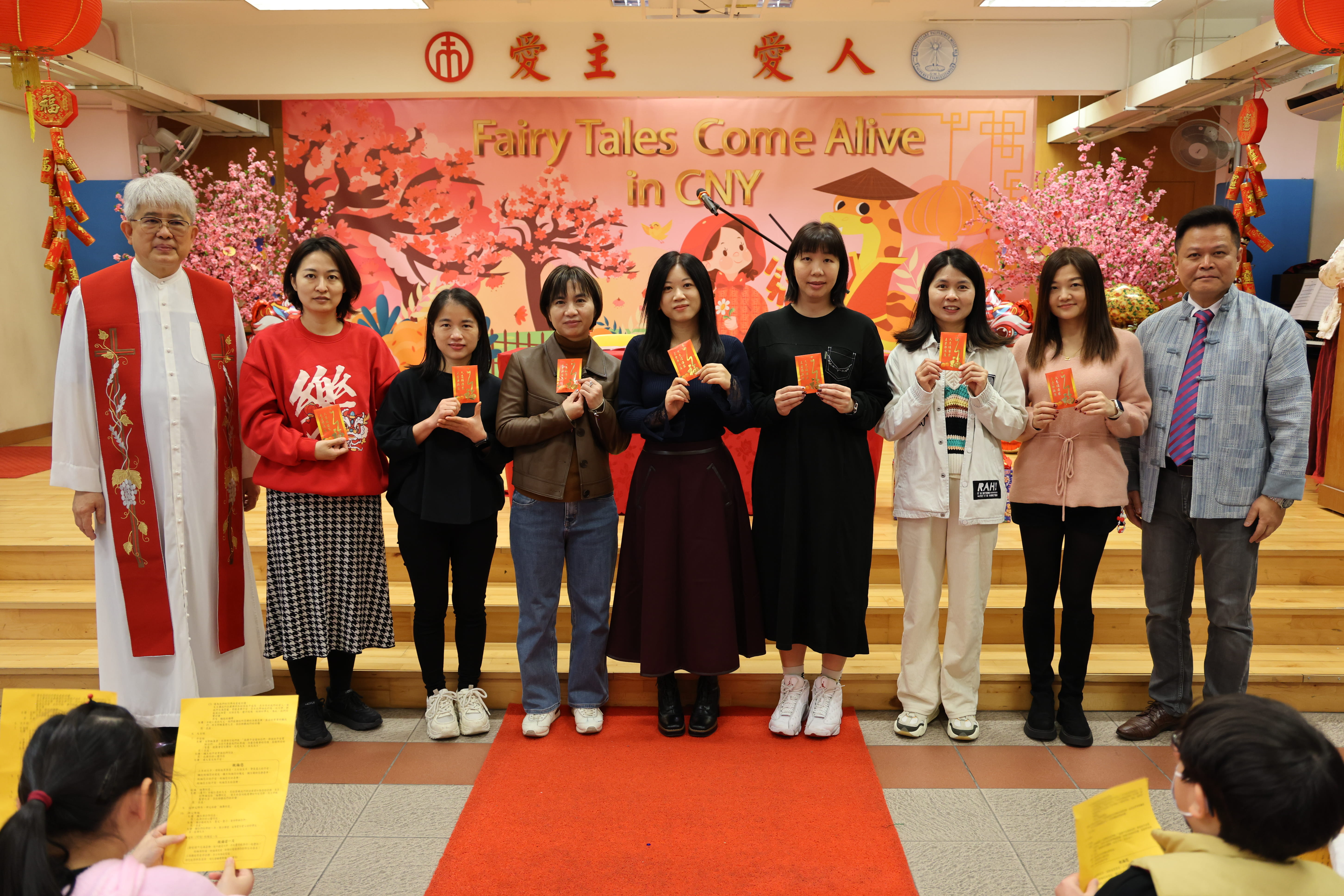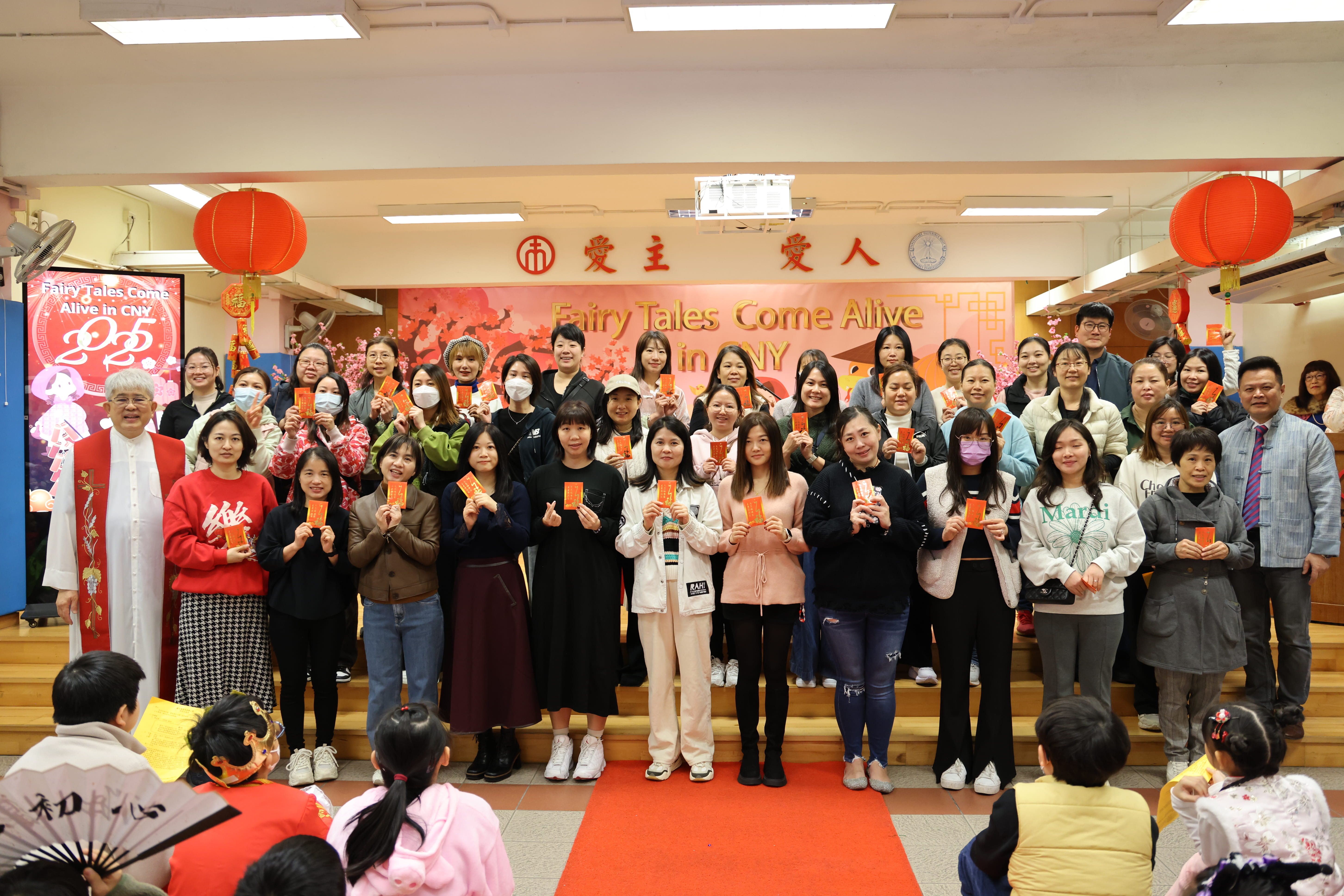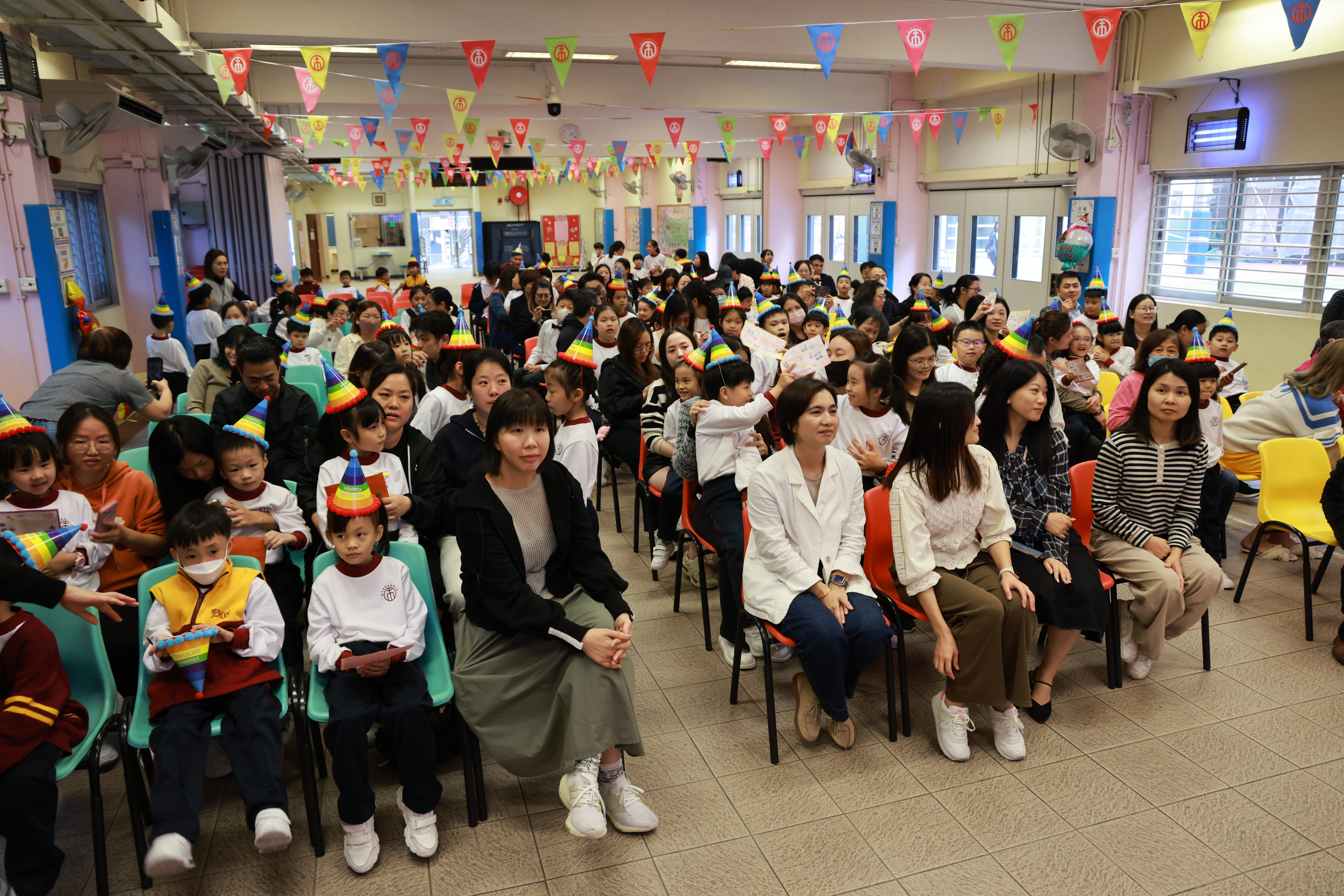 全圖寓意歡欣雀躍的小朋友在獻主會聖馬善樂小學內,
